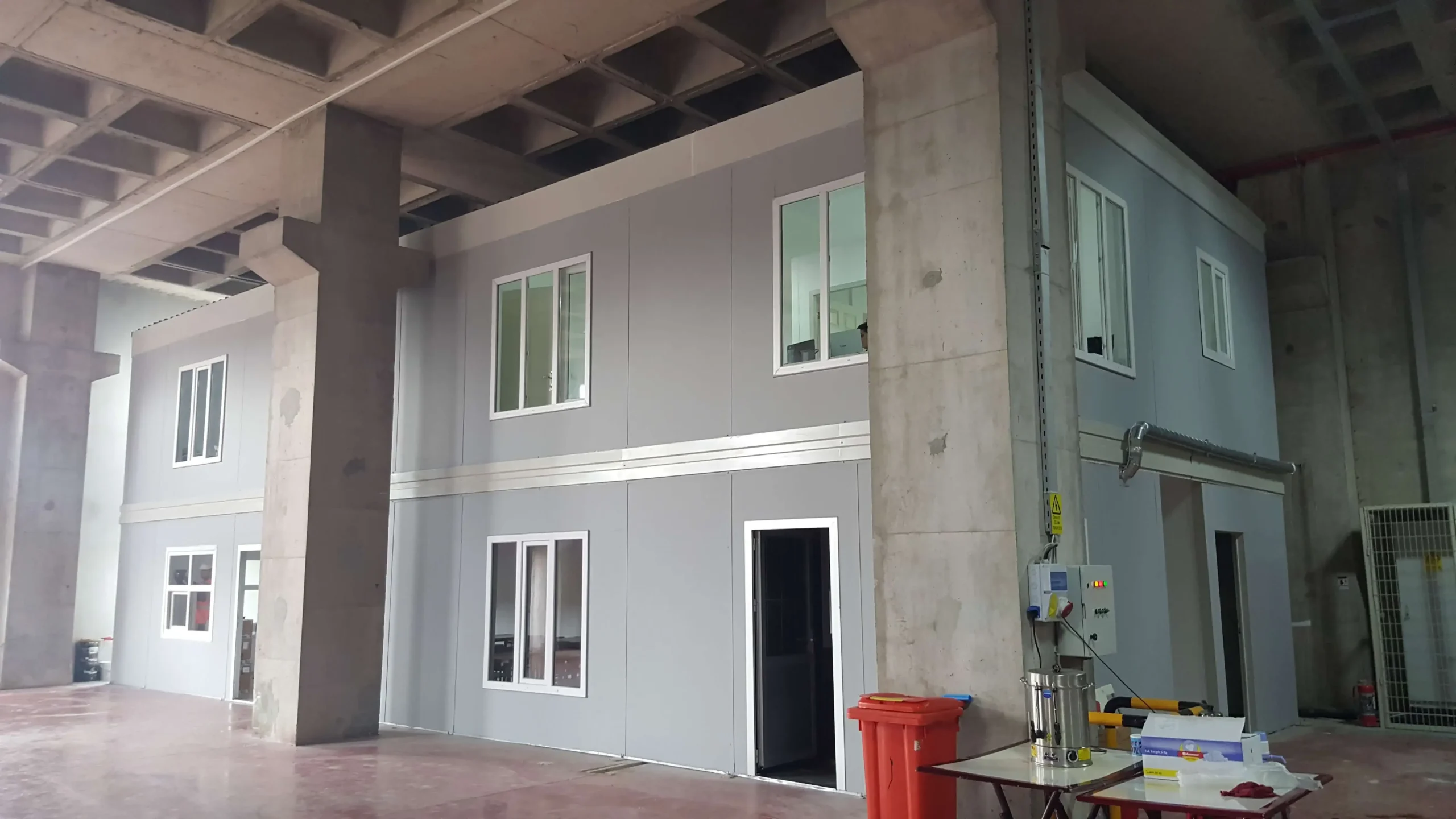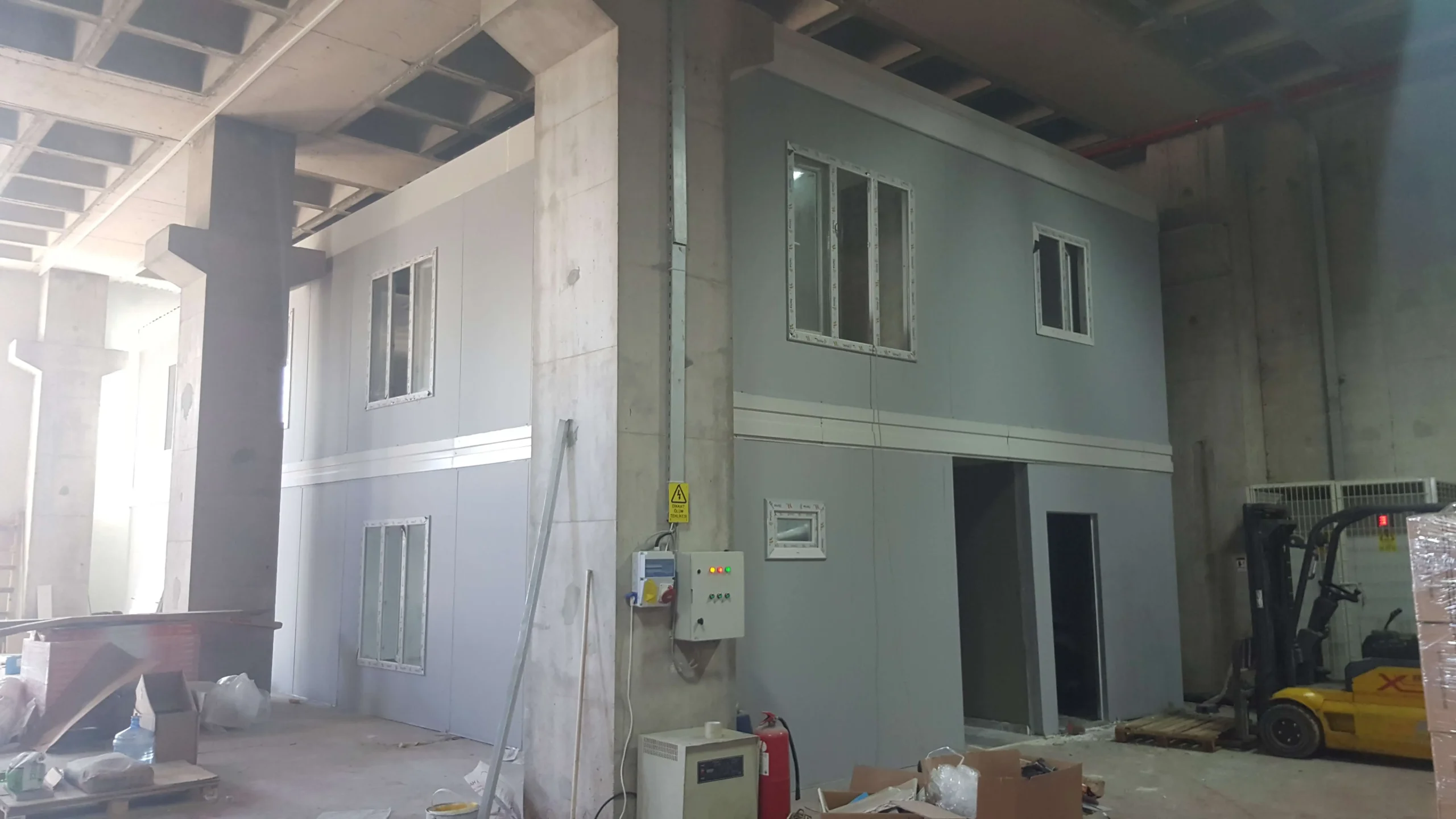 İnşaat sektöründe hız ve kalite arasındaki denge çok önemlidir. Kocaeli Şekerpınar’da bulunan 600m2’lik bu prefabrik ofis projemiz her iki hedefi de güzel bir şekilde gerçekleştiriyor. Sadece 37 günde dayanıklı ve işlevsel bir ofisin kurulumu tamamlandı. Alanında uzman ekibimiz, projeyi ilk aşamalardan itibaren titizlikle planlayarak, fabrikamızda üretilen komponentlerin, yapının kurulacağı alana sorunsuz bir şekilde taşınmasını ve kurulumunu sağladı.