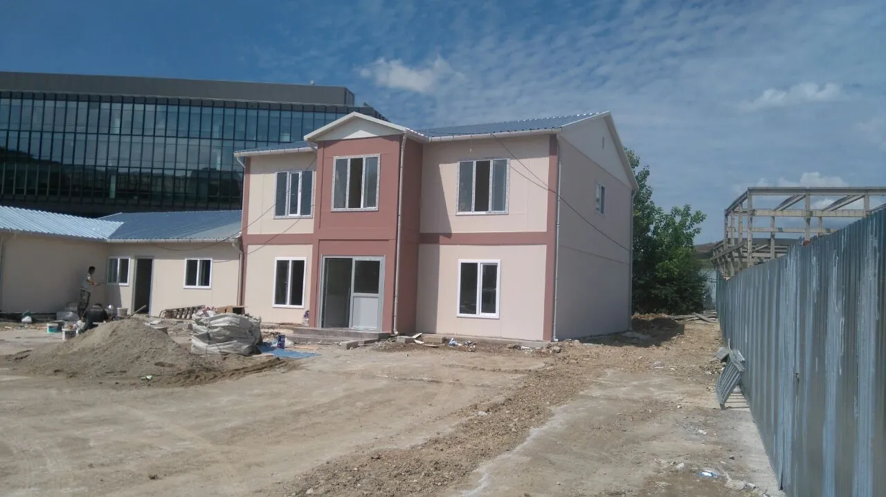 Alyans Prefabrik olarak müşterimiz için bir projenin daha kurulumunu tamamladık. Müşterimiz için ürettiğimiz prefabrik ofis modelini kullanıma hazır olarak kurulumunu sağladık. Yapının tasarımı, müşterimizin talepleri doğrultusunda tasarlanmış olup, oldukça estetiktir. Yapı iki katlı olup, bir ofisin içerisinde aranan bütün her şey bulunmaktadır. Ofisin içerisinde çalışma alanları ve toplantı odası bulunmaktadır. Sıhhi ve elektrik tesisatları çekilmiştir. Yapı tamamen kullanıma hazır bir şekilde kurulumu tamamlanmış ve teslim edilmiştir.
